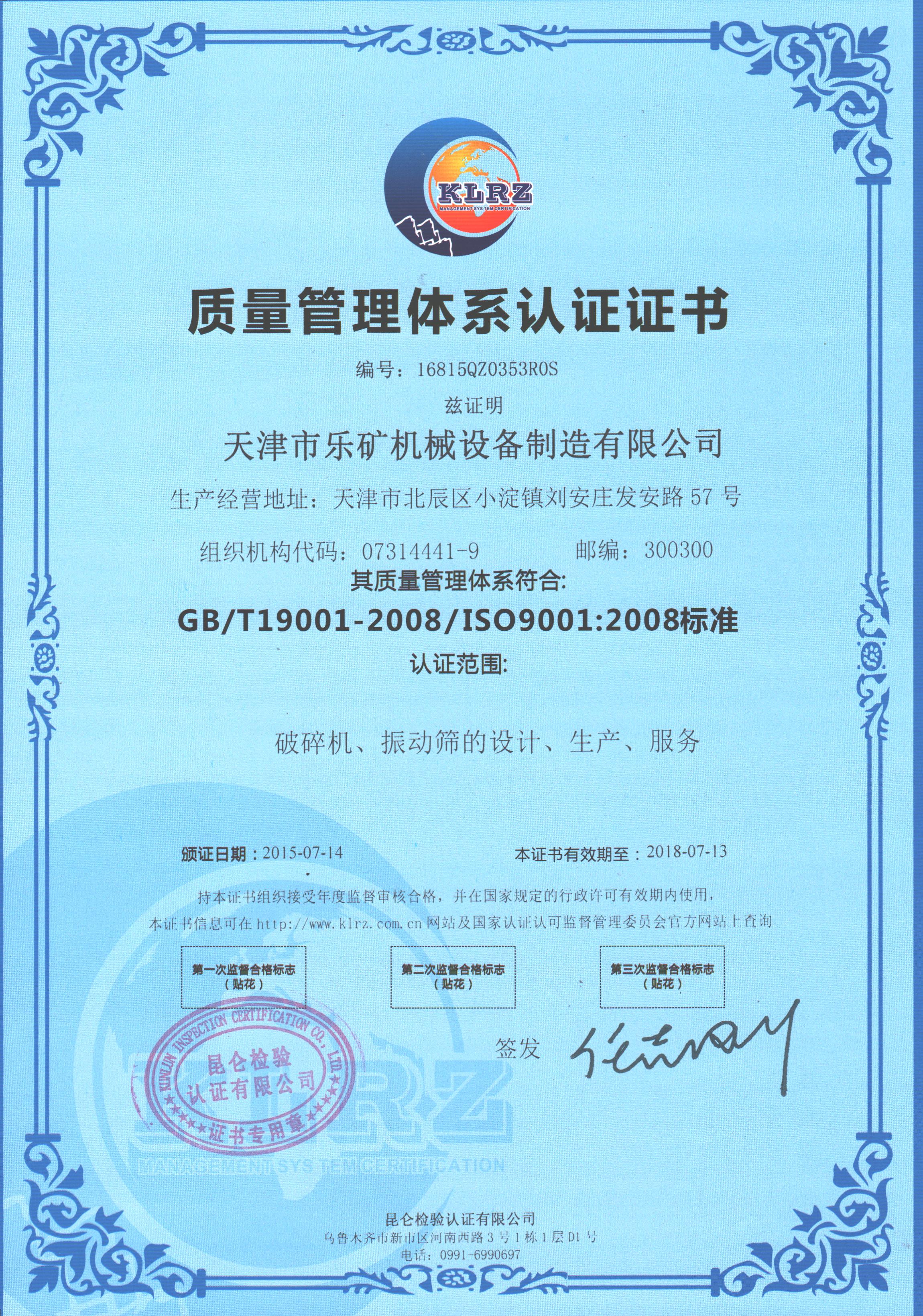 2015-07-28 2015年7月3日,中質(zhì)協(xié)質(zhì)量保證中心的兩位專家蒞臨我公司,對我公司質(zhì)量管理體系認證進行現(xiàn)場評審 . 經(jīng)過專家組的認真審核,我公司各項審核項目均達到了ISO9000質(zhì)量管理體系規(guī)定標準,順利通過此次質(zhì)量管理體系評審。我們在今后的工作中要一如既往的嚴格執(zhí)行質(zhì)量管理體系及規(guī)章制度,嚴格按照標準進行生產(chǎn)作業(yè),持續(xù)提高產(chǎn)品質(zhì)量,為煤礦行業(yè)提供高質(zhì)量的產(chǎn)品和服務(wù)!